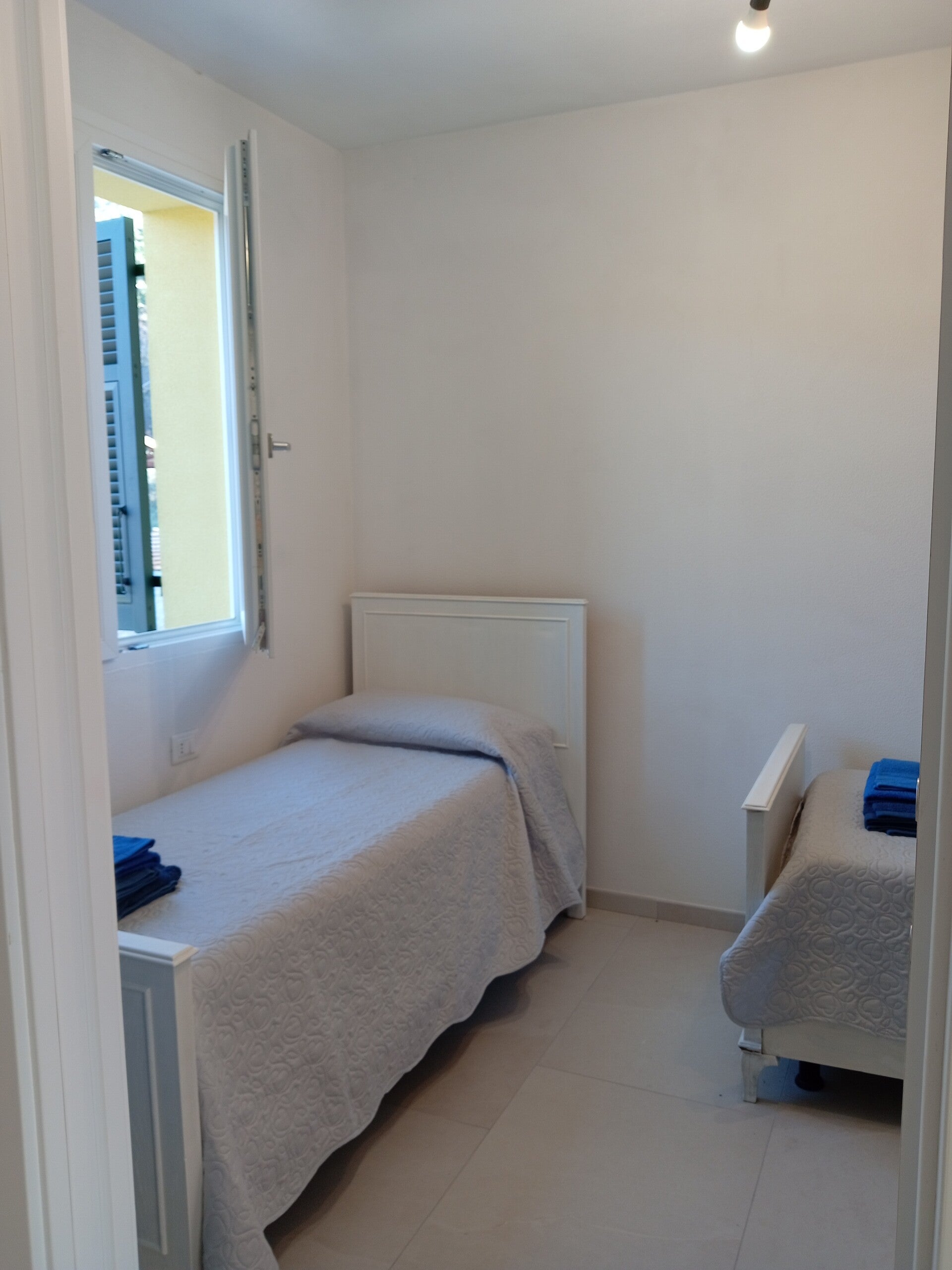 La camera matrimoniale ha accesso sul giardino e offre un'atmosfera intima e accogliente, perfetta per coppie in cerca di tranquillità. L'accesso diretto al giardino permette di godere di momenti speciali all'aperto, sorseggiando un caffè al mattino o godendosi un aperitivo al tramonto.